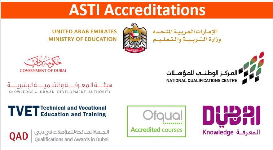 Qualifications & Awards in Dubai (QAD): ASTI Academy’s qualifications are also recognized by the Qualifications and Awards in Dubai (QAD)department, which makes qualifications recognized by the Government body.