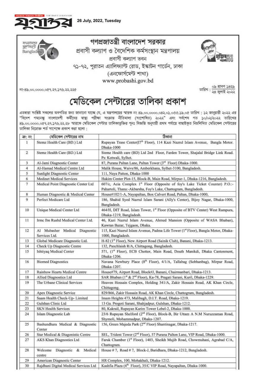 | 30 | Rajdhani digital medical services ltd | Kashfia plaza (4th floor), 35/C VIP Road, Narayanganj, Dhaka – 1000 | |
